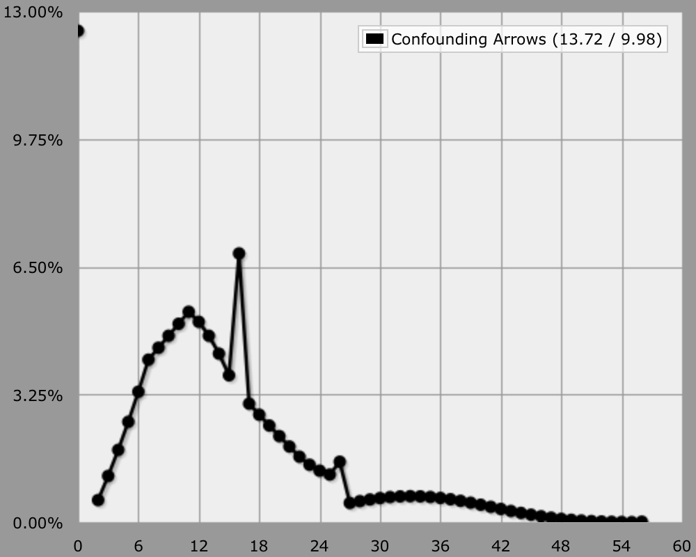 As a bonus, let's consider Confounding Arrows, with all three attacks aimed at a single target. This would be a level 1 character performing a level 15 attack, but let's not get distracted by that. Disregarding the daze and stun effects, the special thing of this power is that if all three attacks connect, it deals an extra +2[W]. As this extra damage gets added to the last attack, it gets maximized if that attack is a critical hit. At least, that's the interpretation we'll use for this program.