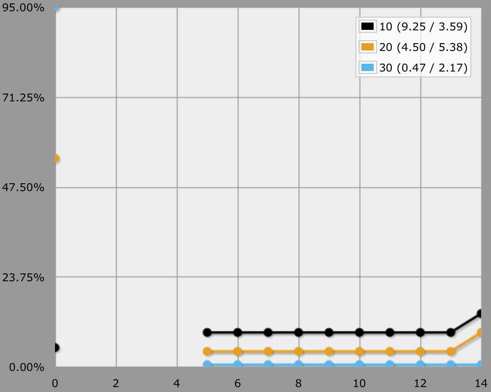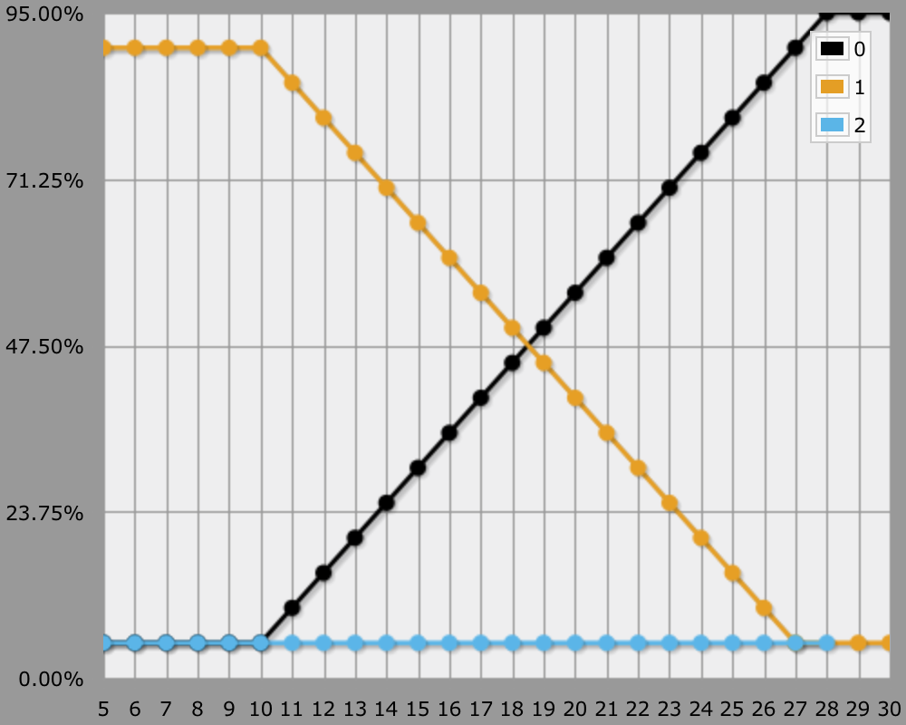To see how our Fighter fares against various different ACs, we can output the calculation multiple times for different ACs. The transposed graph is a useful display for this kind of comparison.