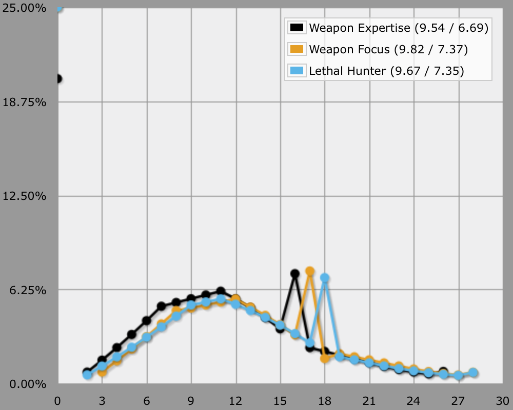 Feat choice can also make a big difference, here are three choices combined with a longbow.