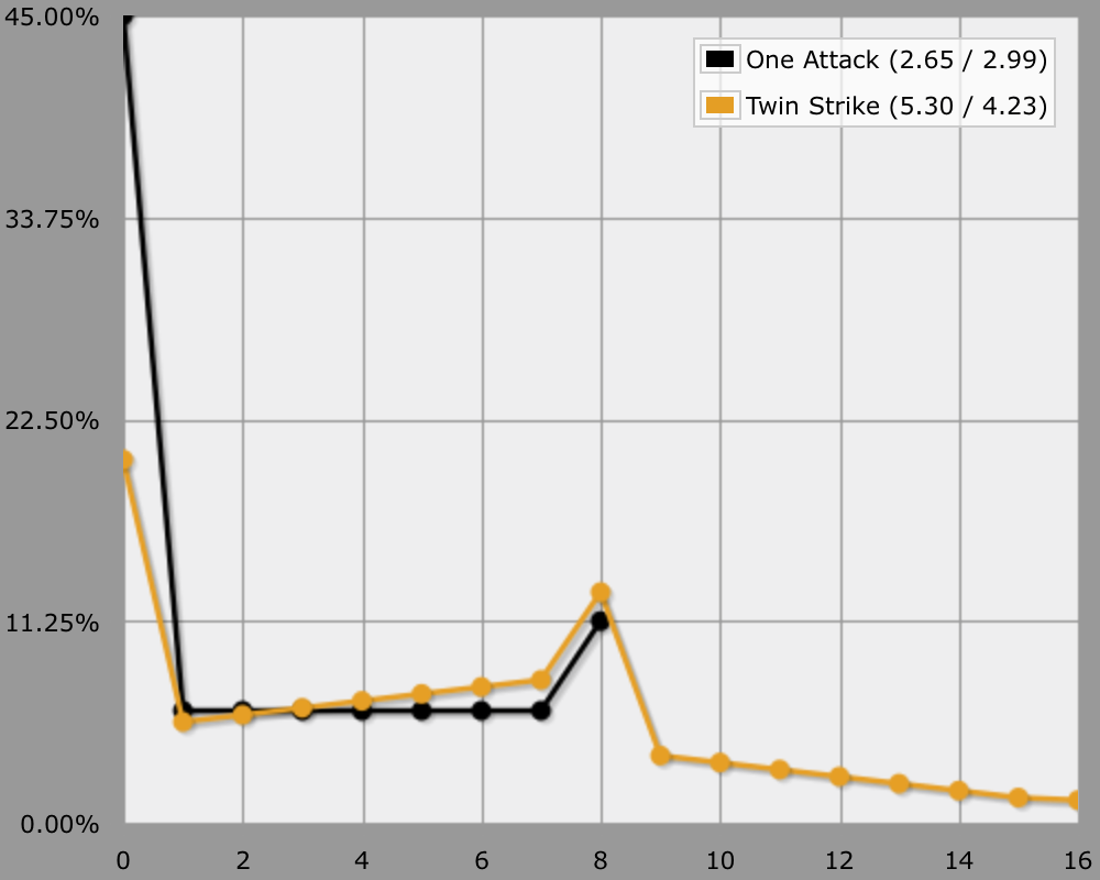 Twin Strike is simply two attacks instead of one, without the usual damage modifier to prevent it from becoming too strong. We can easily calculate this by just using the attack function twice.